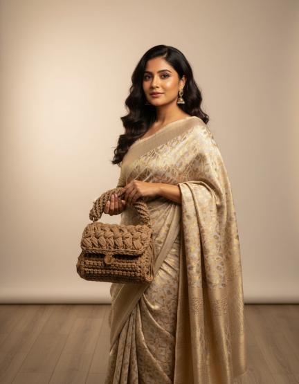 CROCHET BROWN HAND BAG