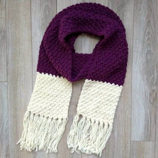 CROCHET WHITE PURPLE MUFFLER